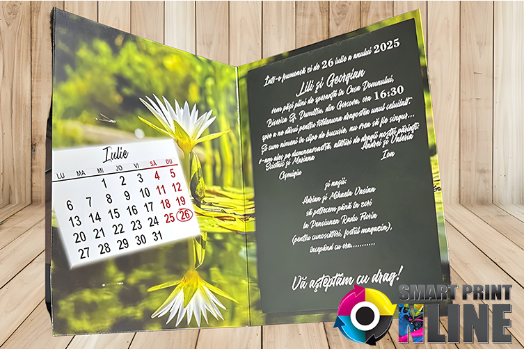 Textul invitației este complet personalizabil, putând fi ales din colecția noastră de texte sau redactat integral de către dumneavoastră, pentru a reflecta perfect stilul și emoțiile voastre.